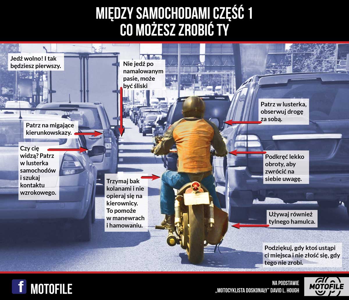 Przechodzimy do konkretów. Oto 10 wskazówek, które sprawią, że jazda motocyklem po linii między samochodami stanie się bezpieczniejsza.